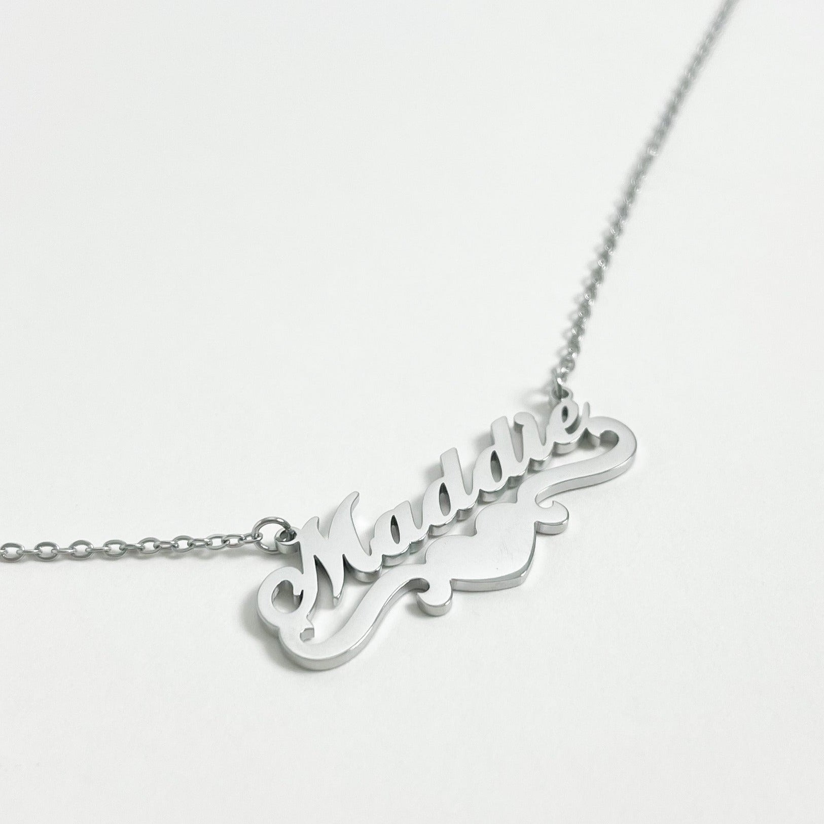 Our heart name necklace has been crafted from high quality stainless steel for a water and tarnish resistant finish so you can wear this custom piece every day.