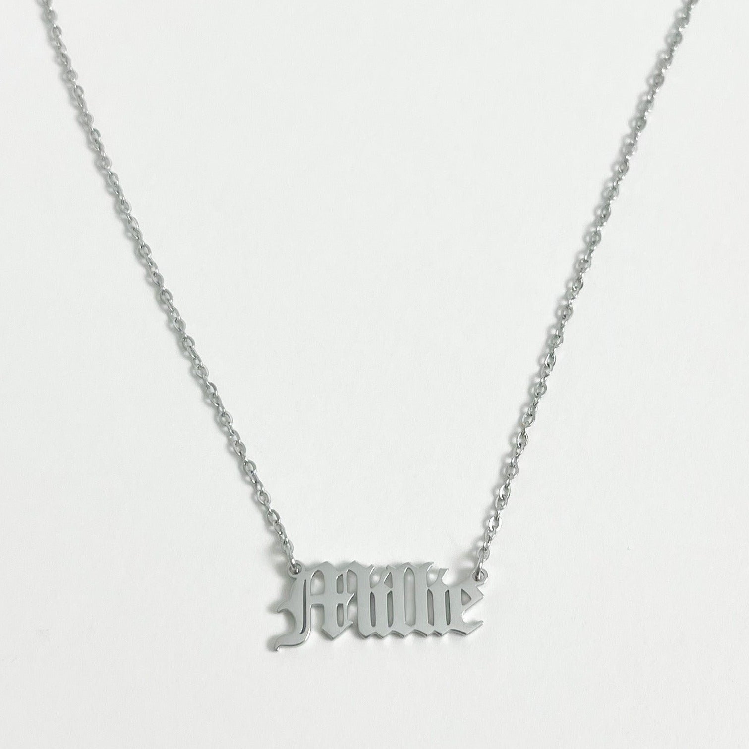 SILVER PERSONALISED OLD ENGLISH NAME NECKLACE